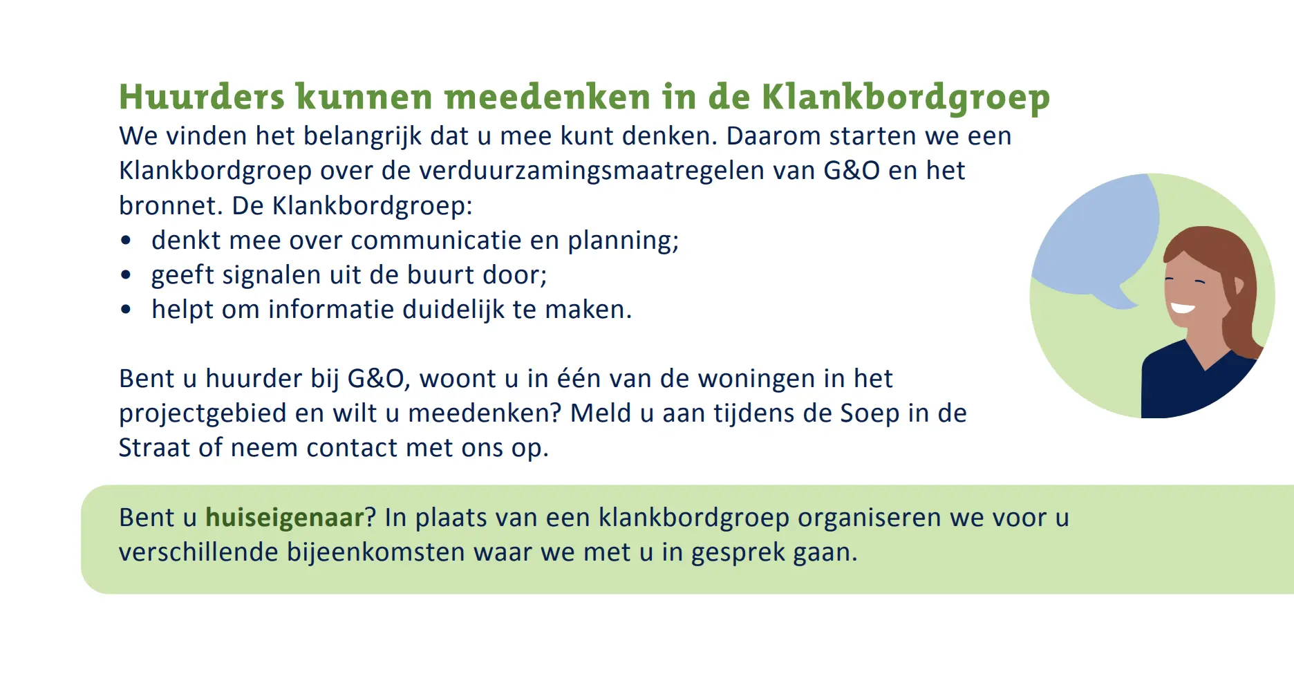 Begeleiding van de KlankbordGroep én de corporatie: Wij begeleiden niet alleen de KlankbordGroep, maar ook de corporatie in hoe ze met de KlankbordGroep omgaan. Want een goede KlankbordGroep vraagt ook iets van de opdrachtgever: openheid, terugkoppeling en de bereidheid om inbreng serieus te nemen. Het doel is altijd hetzelfde: een plan dat is afgestemd op de doelgroep én de ambitie.