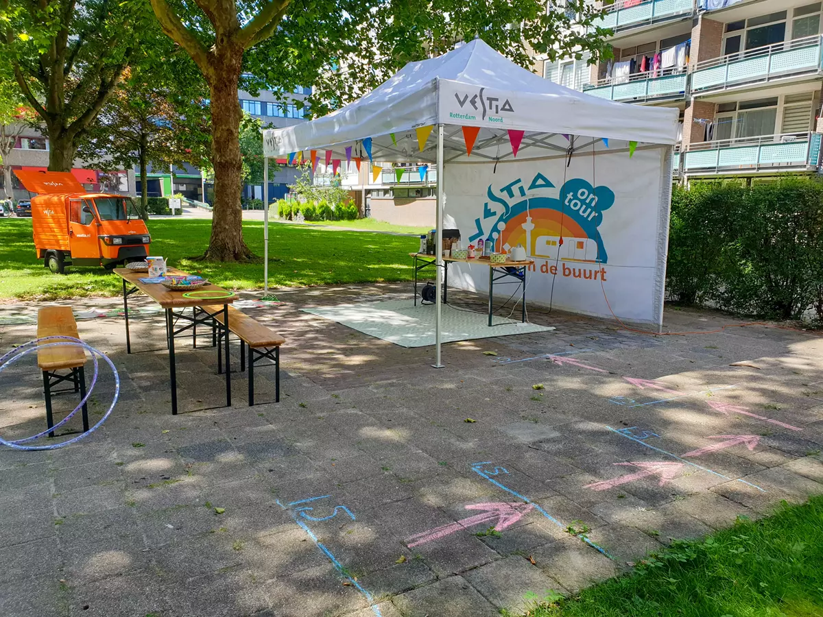 Om het contact verder te versterken, organiseerden we maandelijkse KoffieMiddagen: laagdrempelige ontmoetingen met goede koffie en zelfgebakken taart. Door deze momenten structureel te herhalen, groeide er iets moois: bewoners leerden elkaar kennen en voelden zich steeds meer verbonden met hun wijk. Na een jaar droegen we, zoals afgesproken, de organisatie van deze bijeenkomsten succesvol over aan Hef Wonen.