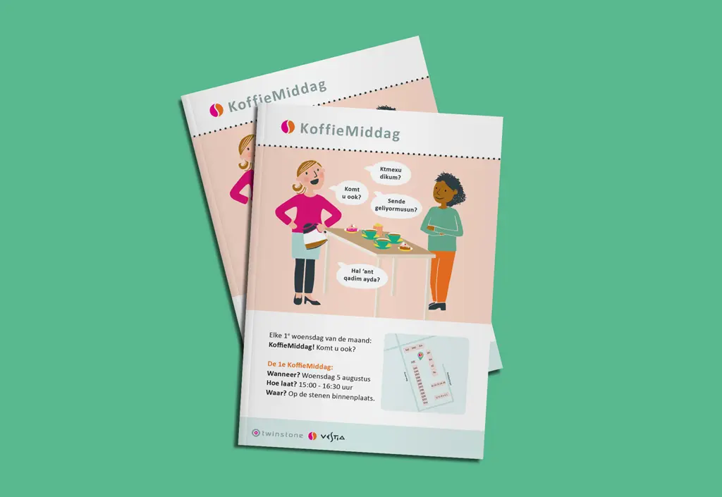 Daarnaast ontwikkelden we een herkenbare huisstijl voor het project en verzorgden we alle bewonerscommunicatie – met speciale aandacht voor anderstaligen en laaggeletterden. Zo bleef de informatie voor iedereen toegankelijk, dat voelt voor ons als een tweede natuur en bespaarde de corporatie veel tijd.