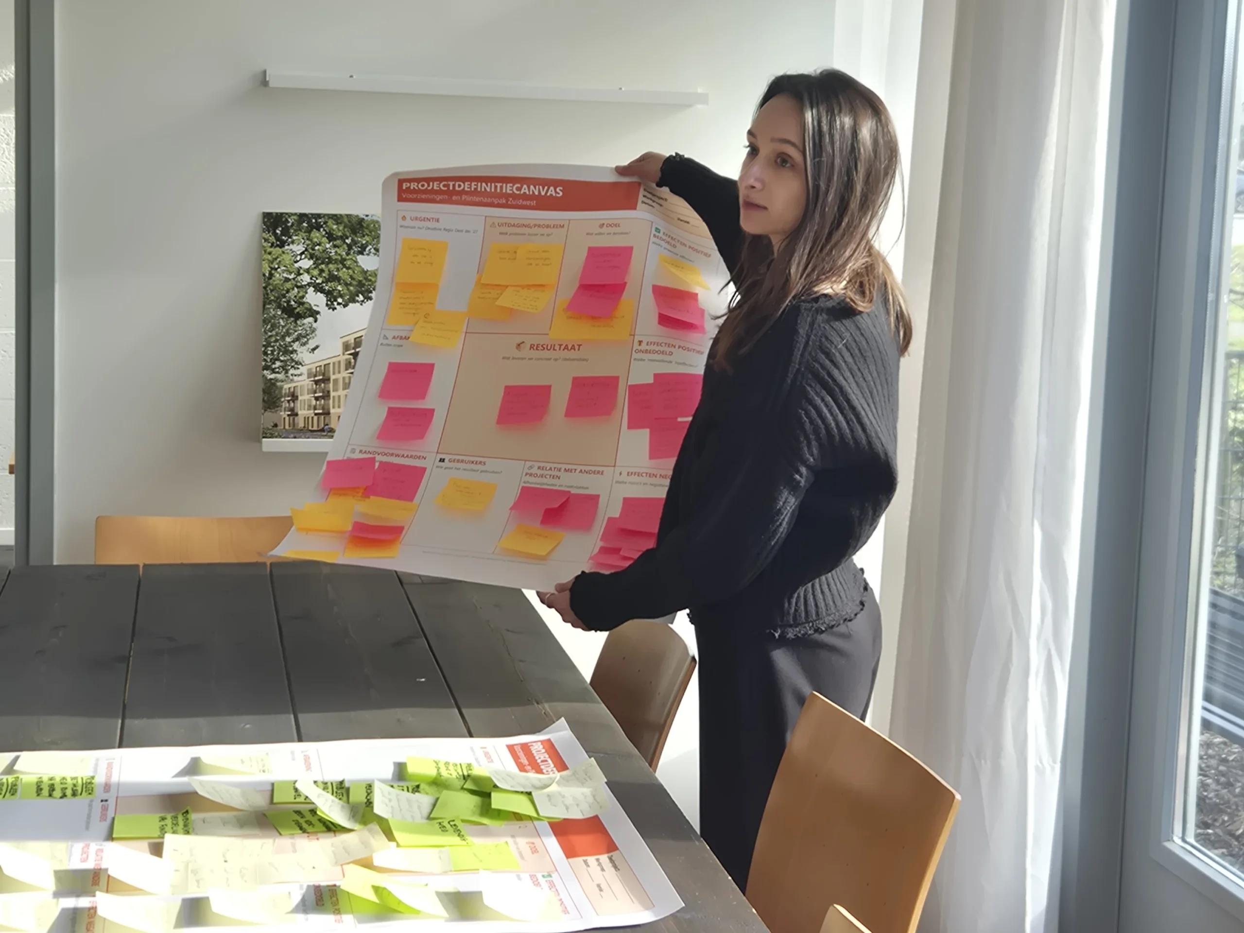 Niet beginnen met een plan, maar met begrip. Eerst zijn we het veld in gegaan om te horen waar eerdere pogingen stukliepen. Dit bepaalde onze aanpak: geen dikke nota, maar een driedaagse workshopreeks met meer dan 25 deelnemers van gemeente, corporaties en het Nationaal Programma. Samen op de fiets langs de plinten, samen de plinten inschalen op een prioriteitenmatrix, samen knopen doorhakken.